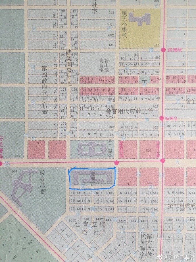 蓝线所示当时伪满洲国产业部(后来的兴农部)地址