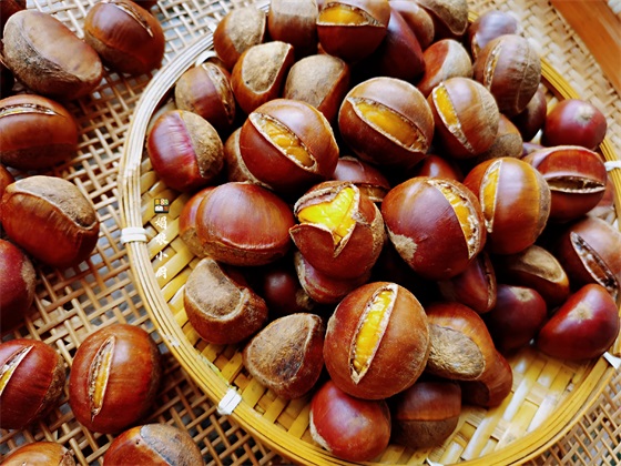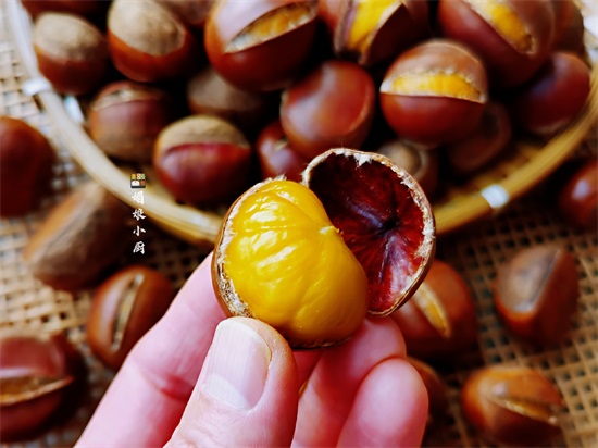 二捏,捏一捏栗子外壳硬,说明栗子新鲜,果肉比较饱满,如果捏起来比较软,则果肉已经有些干瘪了,不新鲜