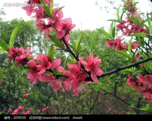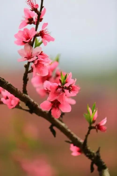 1.桃花象征着春天。桃花一般在早春开放,所以自古以来桃花就是春天到来的象征。吴融有诗云“满树和娇烂漫红,万枝丹彩灼春融”;白居易有诗云“人间四月芳菲尽,山寺桃花始盛开”。春天的花枝上,若是没有两三朵桃花点缀,便感觉那并不是真正的春天来临。桃花作为春天的代言,无愧于人们的厚爱。