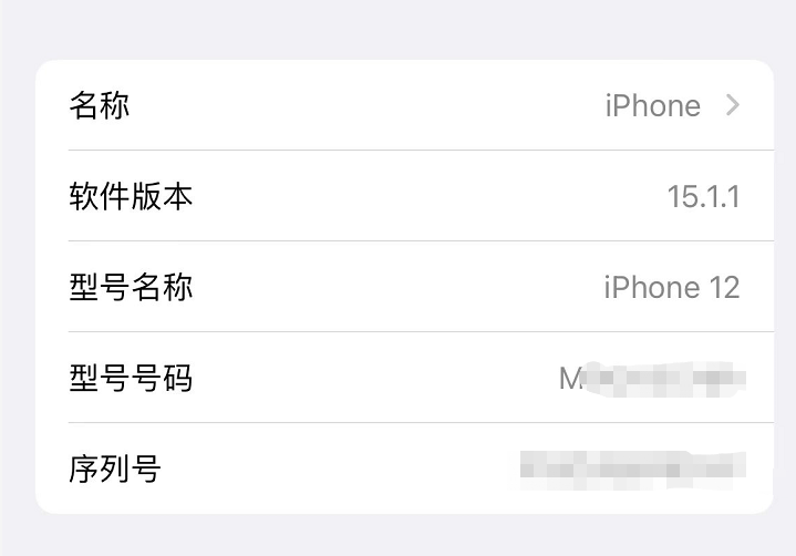根据个人的经验,只要是在苹果官方售后置换的官换机,除了没有外包装之外,和全新机是没有任何区别的,只不过官方为了区分会在产品序列号中予以区分,零售机的产品型号一般以”M”开头,而官换机一般以”N”开头。如下图所示,我的iPhone12是零售机,所以他的型号开头就是M。