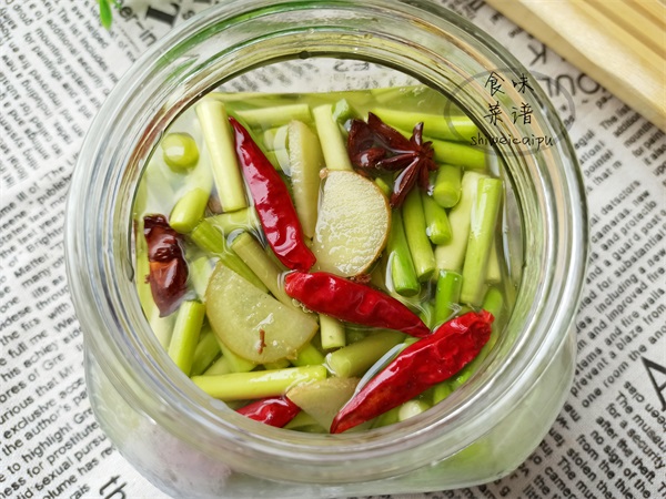 腌蒜薹的方式有很多,有人喜欢用泡椒,有人喜欢放醋,有人喜欢放糖,而我会介于三者之间,存放的越久,味道也越好,早晨配着米粥吃,非常的脆爽过瘾。