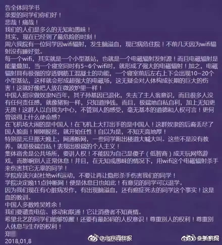 倒是出题院长的另一个举动——“杜绝WIFI运动”基本确信了一个事实:这所学院的负责人确实存在着一定的认知缺陷和心理问题。