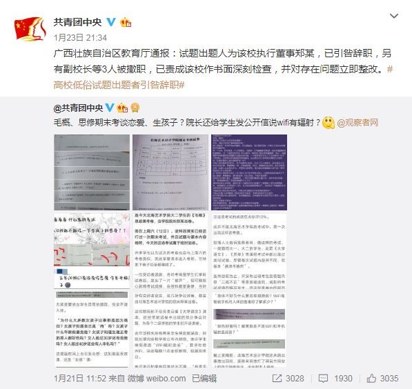 高校惊现奇葩考题!官方回应:出题人引咎辞职,3人被撤职