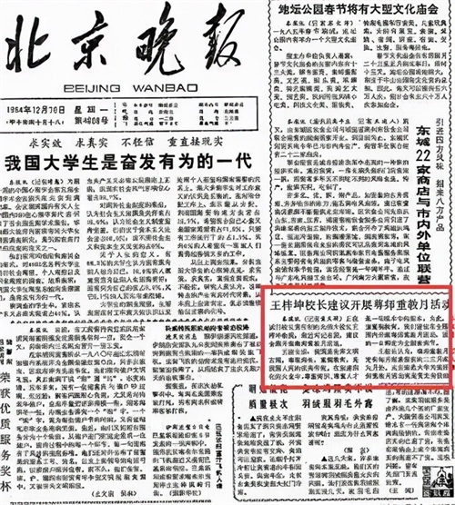 《北京晚报》头版刊发文章《王梓坤校长建议开展尊师重教月活动》