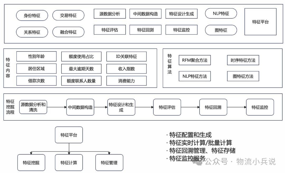 特征是从数据中抽取有效的、针对特定目标的关键信息,形成可以用于模型和决策的特征,从数据产生的过程就是特征挖掘。数据质量决定了特征质量的上限,好的特征挖掘过程是尽可能从数据中挖掘最有价值的信息。特征平台是为了支撑特征从开发到应用的工具平台。通常特征平台包括特征挖掘模块、特征计算模块和特征管理模块。