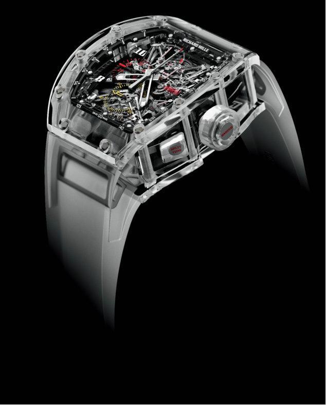 2003年:RM 004双秒针追针计时码表首次亮相。为了完善这枚表款,研发部门花费五年多的时间。品牌放弃过去采用的方法,即用依靠杠杆装置启闭并与之相互作用的导柱轮,而改用一种创新的方式,通过钛合金制造的“夹钳”来实现追针计时功能;运用两支同时运作的夹钳臂,以单次快速动作的方式来“攫取”追针齿轮。