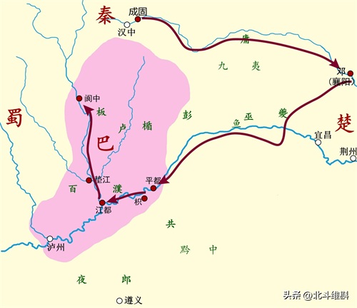 巴蜀虽然同处于四川盆地,但是两国并未和谐相处,而是战争不断,并成为了世仇。前316年,蜀国进攻自己的分封国——苴国,苴侯出奔到巴,向秦求救。于是秦国就派遣司马错进攻蜀国,古蜀文明正式灭亡。随后,秦军又接连消灭了苴国和巴国,将整个巴蜀大地纳入了疆域范围。此后,秦国设置了巴蜀二郡进行了管辖。经过秦国的建设,巴蜀之地成为了“天府之国”,巴蜀的粮食为秦国的统一战争提供了保障,可以说是全国的大后方。