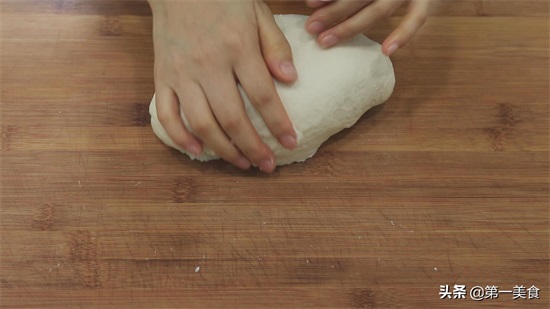 我们把面团取出来,放在案板上多揉几分钟。