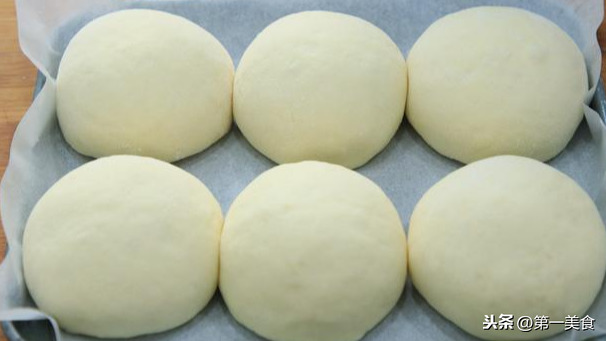 用手揉成圆面坯 ,搓揉好的6个面坯,外形要一个模样。
