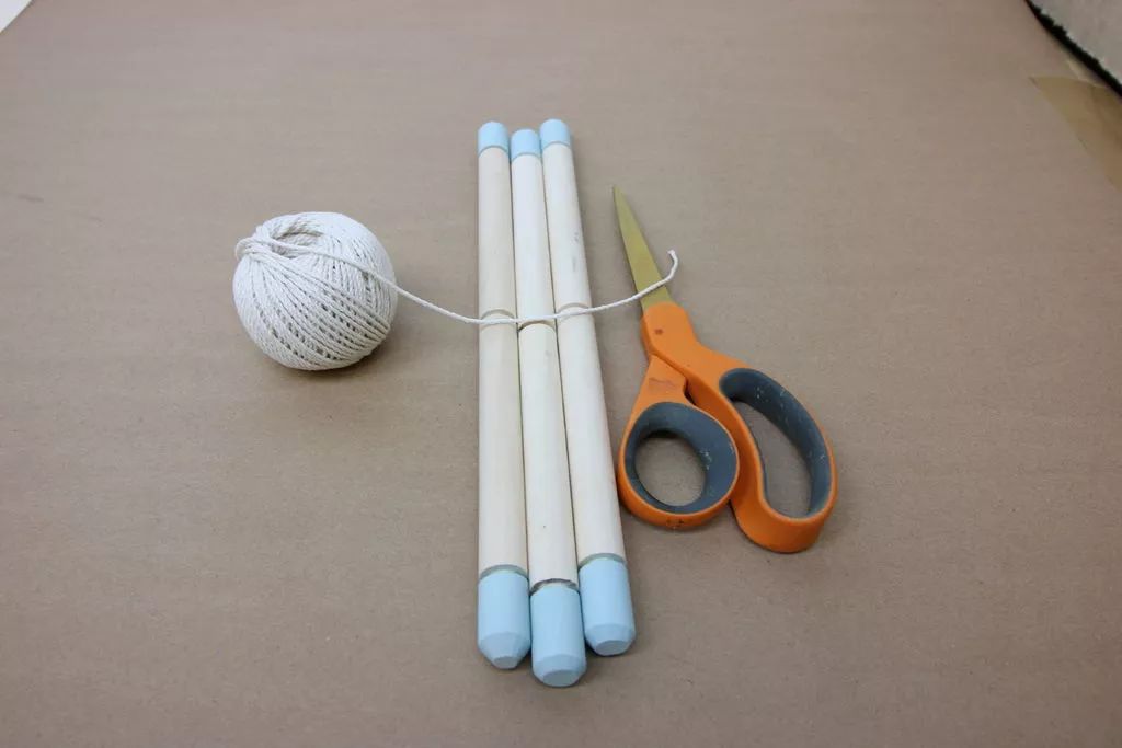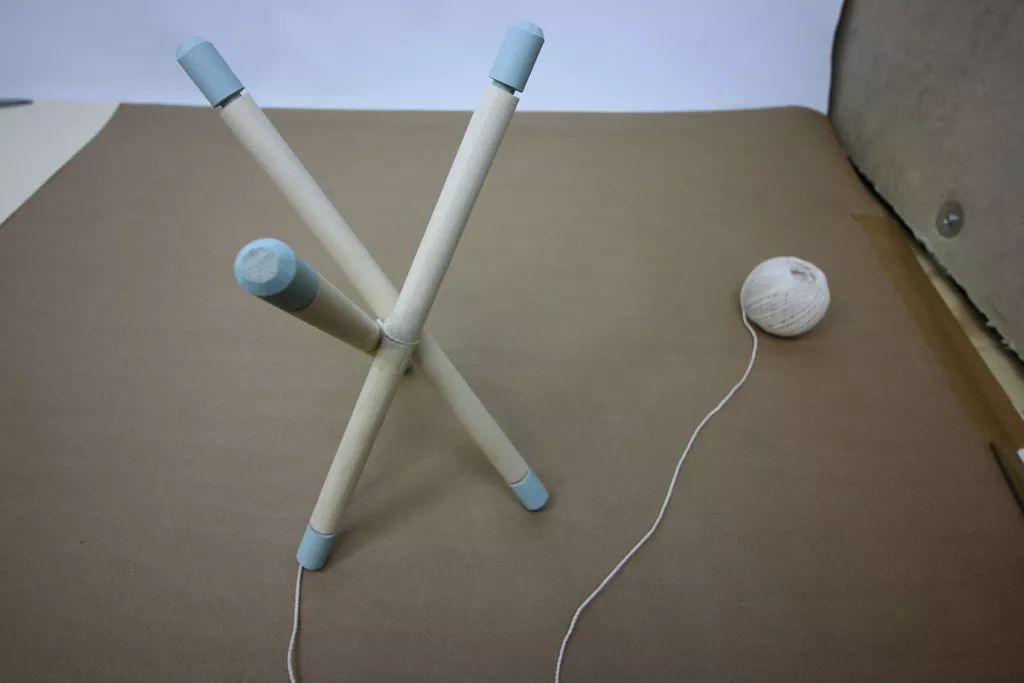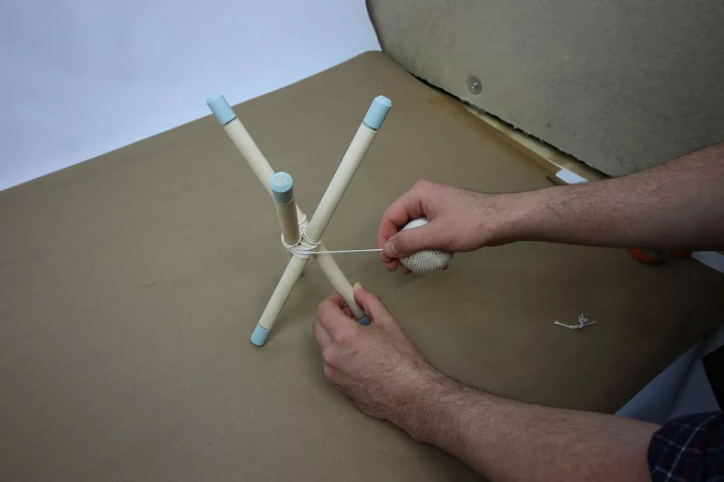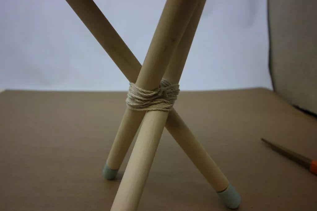 接着就用锉刀将榫钉刻在中点,这是为了整个木架有更好的稳定性,最后就可以用绳子固定,一个简单的三角木质花架就可轻松制作出来了。