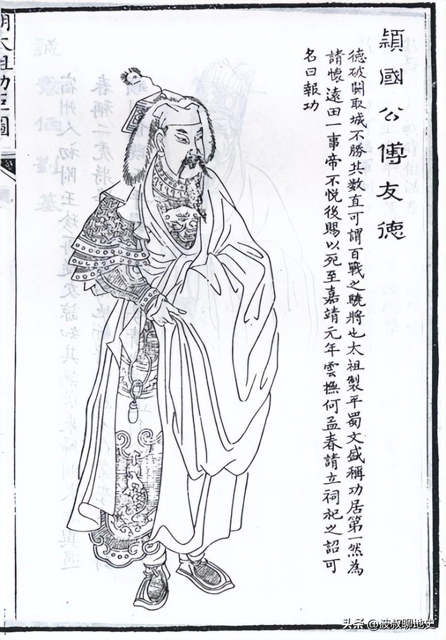 傅友德,明朝开国功臣、名将,早年参加元末红巾军刘福通义军,后归顺朱元璋,曾屡立战功,从偏裨升为大将,多次带兵大胜元军,平定甘肃、四川、贵州、云南,因功封颍国公,加太子太师。