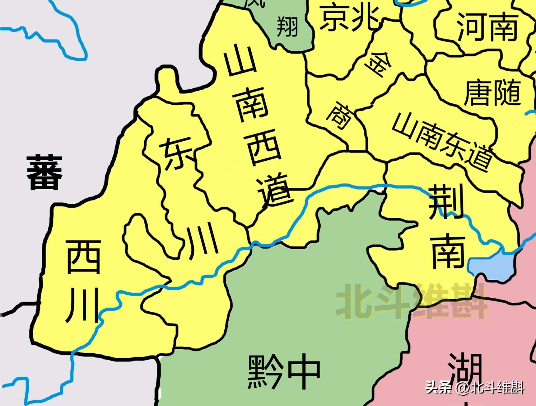 当然,我们要注意这时候巴蜀虽然出现割据政权,但是巴蜀的行政区划依然是并列的,巴蜀没有隶属关系。这样的模式在唐朝是继续发展的。唐朝时期在全国划分了诸多的道,其中成都平原设置了剑南道,而嘉陵江流域和三峡一带则为山南道。后来道的数量增加,剑南道分为了东川节度使和西川节度使,山南道也分为了山南西道和山南东道。可见,当时的巴蜀是完全没有被视为同一个地区。