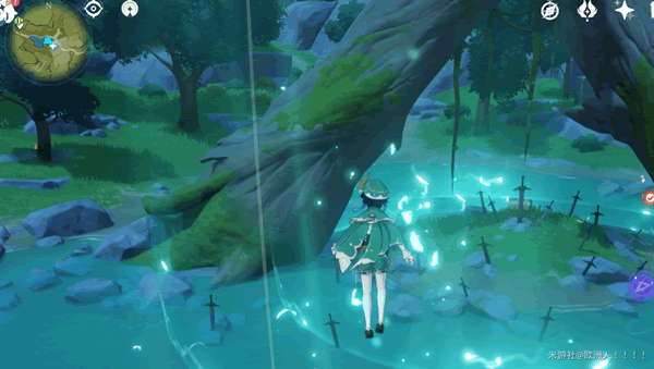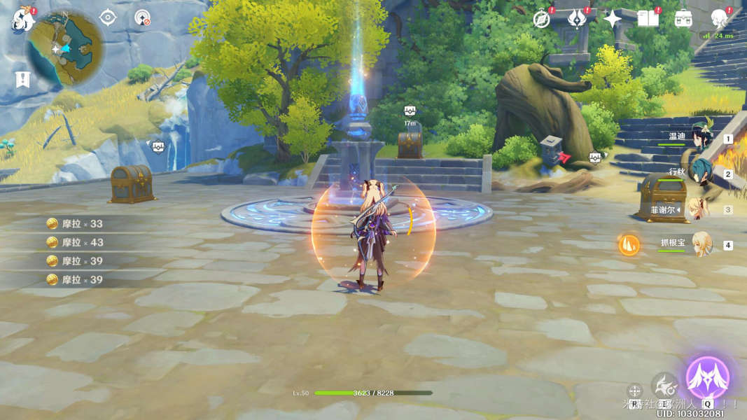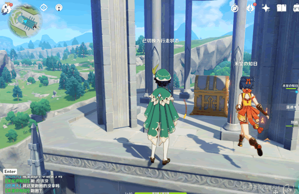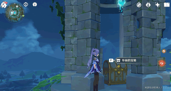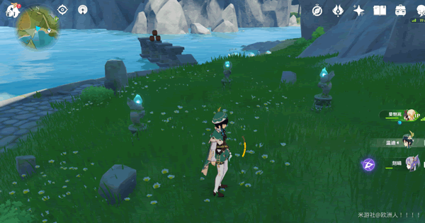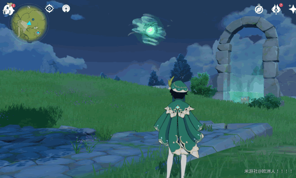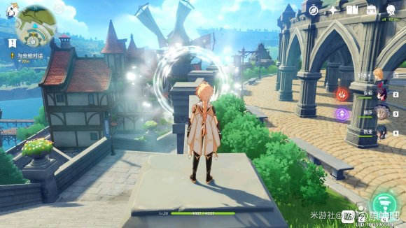 3.蒙德城广场台子上寻找白色光圈,随光圈绕广场跑一整圈。(绝大多数截图为我实地截图,但部分无力获取的来自他人【如这个光圈不是世界主人看不到】)