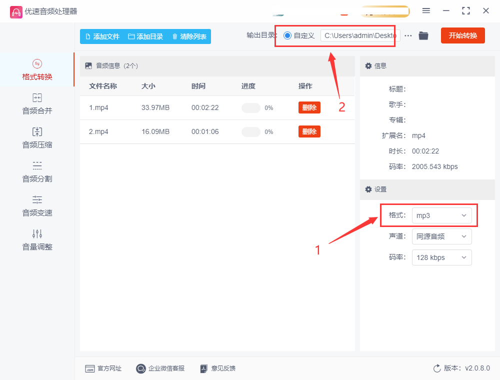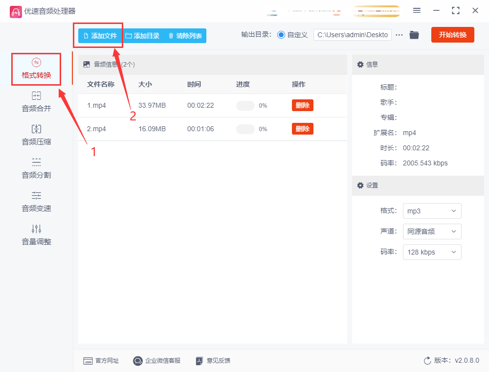 使用这个软件里面的音频格式转换功能,就可以将mp4视频转换成mp3音频文件,达到提取视频里面声音的目的。
