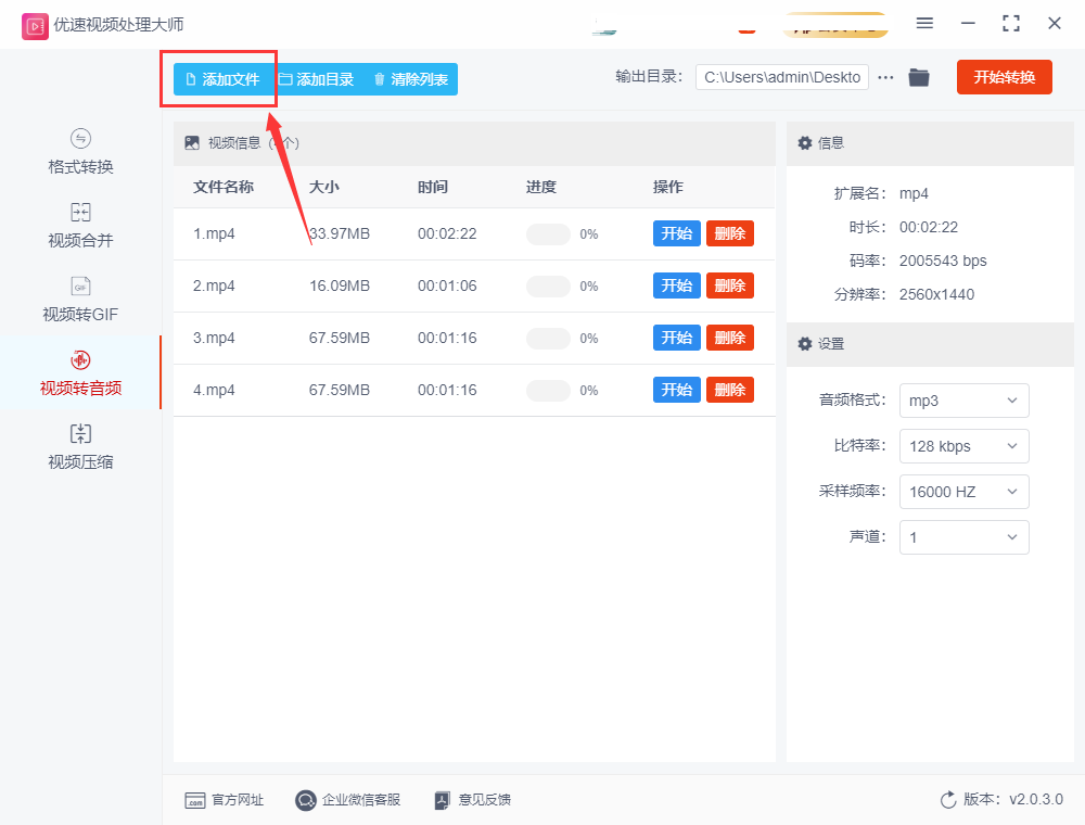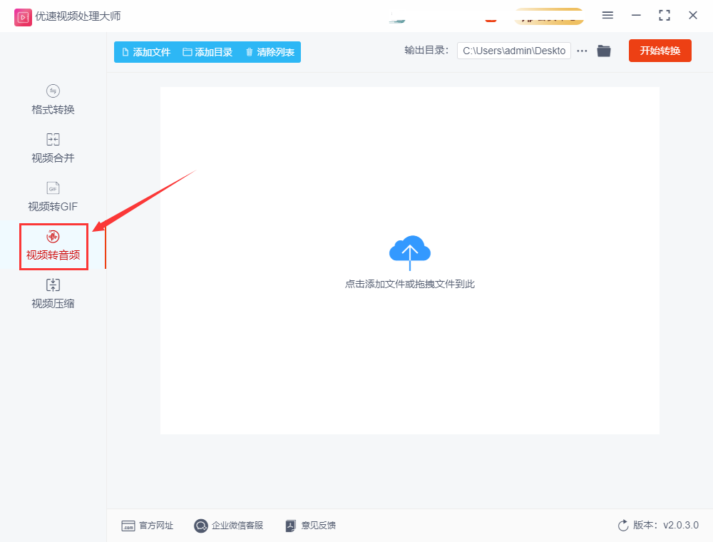 这是一个专业的视频处理软件,功能强大,使用其中的视频转音频功能,就能将视频里的声音单独提取出来了,下面是详细步骤。