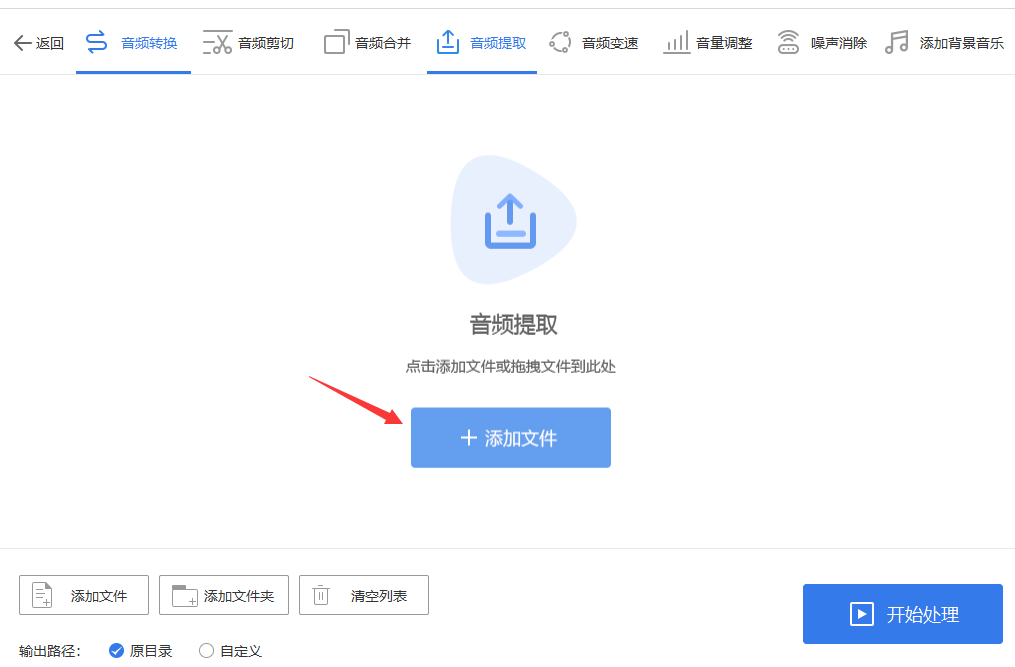 步骤2、点击【添加文件】按钮,用户将需要单独提取声音的视频文件全部上传到软件中。因为小编推荐的软件工具支持批量操作,那么我们最好一次性将音频文件统一上传,这样更能提高我们的提取效率。