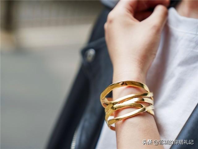 ,比如刚刚提到的白金,银饰以及手表、五金饰品等。冷金属饰品的金属光泽能让穿搭