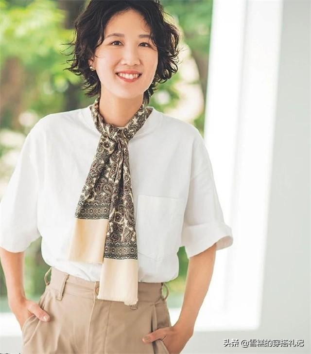 会更显气质,也更突出中年女人的成熟优雅气质。在日常的穿搭中,大家不妨试试选择一条柔软顺滑的丝巾来搭配基础穿搭,长度和花色可以根据穿搭的主色调选择用亮花色点缀或用同色系搭配增加层次感,这样的搭配能达到