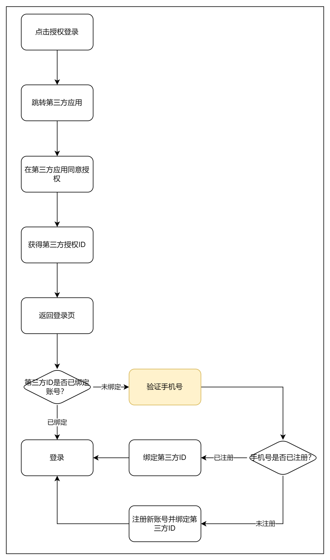 授权登录会跳转到第三方应用,由用户点击同意授权,授权成功后获得第三方应用分配的“用户 ID”,系统再将取得的用户 ID 在系统中查找是否有绑定的账号,如果没有绑定账号,则说明之前用户没有使用该 ID 授权登录过,则可以创建新账号并绑定 ID。