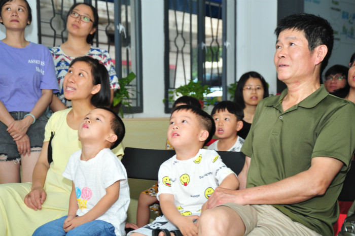 孩子在故事会的陪伴下也出现了喜人的变化。3岁半的沫沫来自江西,是故事会的“常客”,还喜欢坐在第一排做“捧场王”。他妈妈笑言,沫沫因为故事会爱上了阅读,在家里喜欢抱着绘本和长辈一同阅读,还爱问问题,成了一个十足的“问题孩子”。