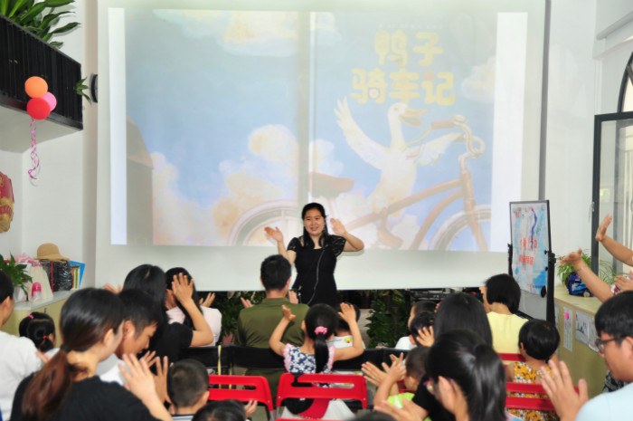 宣雯说,每次故事会分享的绘本都不同,但都通过有趣浅显的内容让孩子懂得某个道理、学习礼仪,或让家长学会怎样与孩子更好相处。而《鸭子骑车记》讲的是一只鸭子不被理解想学骑自行车的想法,但它始终坚持挑战自己并最终感染其他小动物的故事。“其实是想告诉小朋友,当遇到新事物时,要勇敢地迎接挑战。”