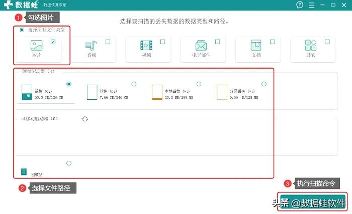 如果照片是大批量被删除了,且已经从回收站被清空了,怎样找回删除的照片呢?比较靠谱的方式就是借助专业的数据恢复软件,比如小编经常使用的这款数据蛙恢复专家,已经帮我找回了很多丢失的数据。该软件操作方便简单,可以快速高效的找回丢失的照片,在恢复数据方面也有很大的可能,其具体操作步骤如下: