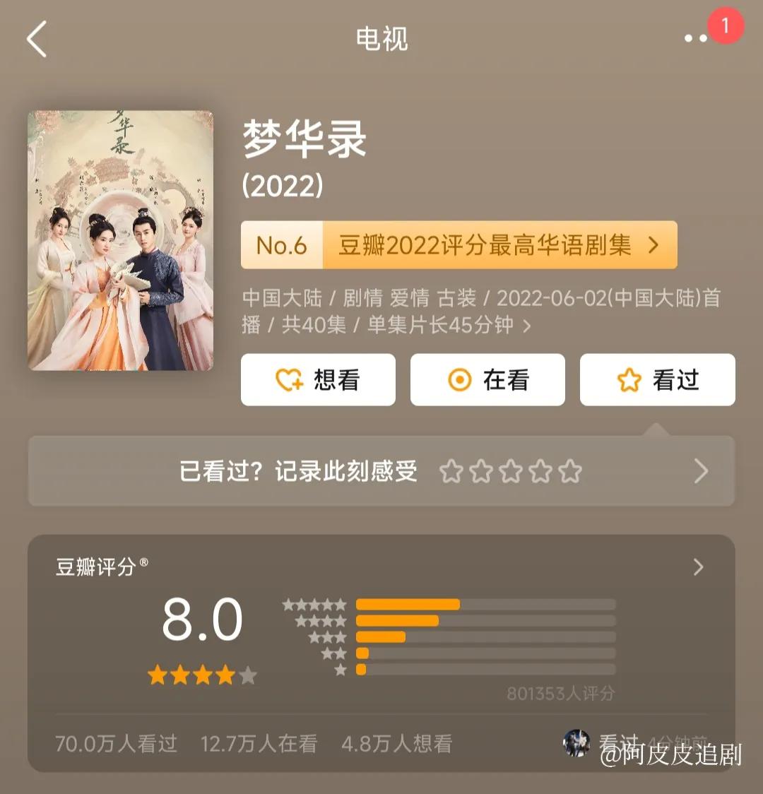 《梦华录》豆瓣评分:8.0分