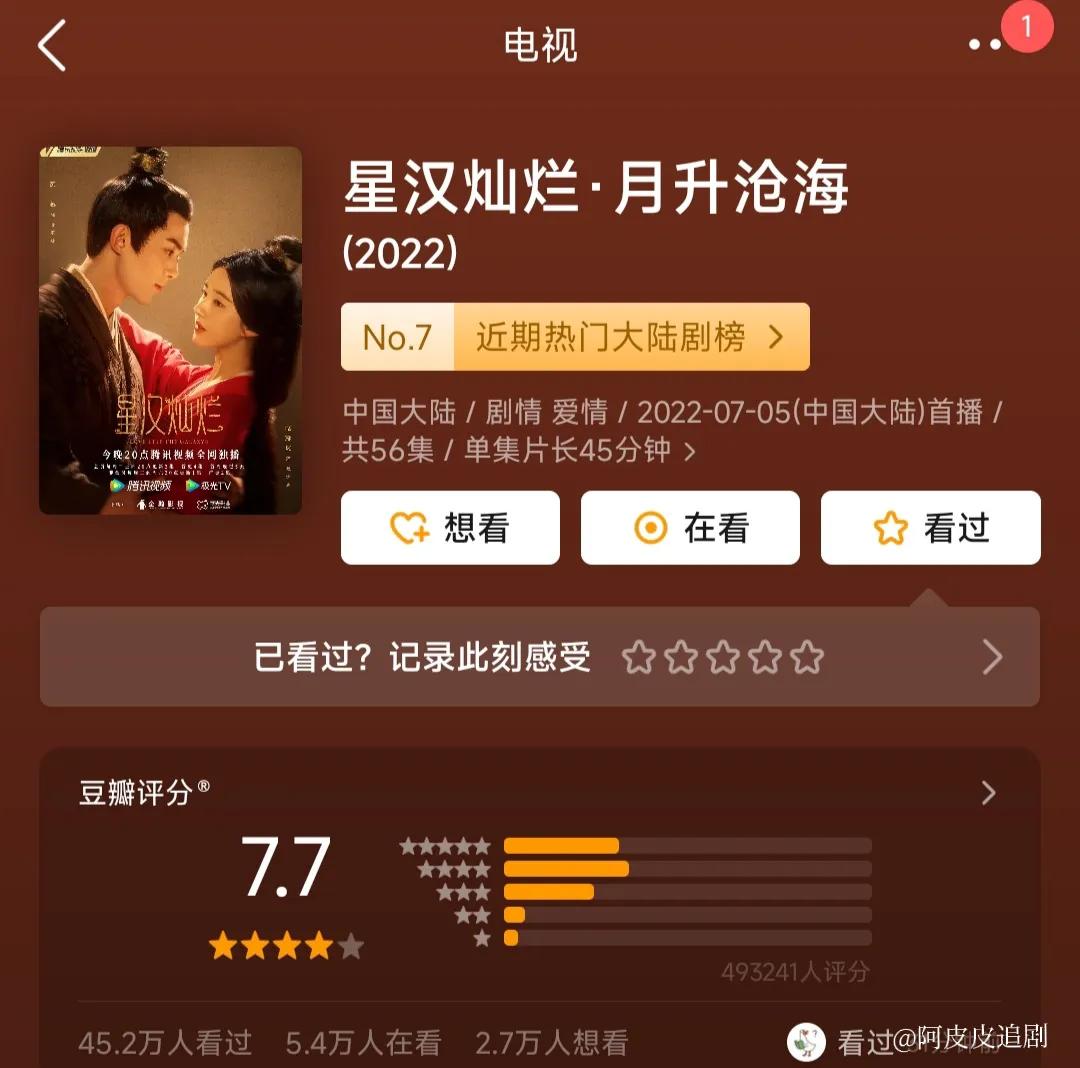《星汉灿烂》豆瓣评分:7.7分