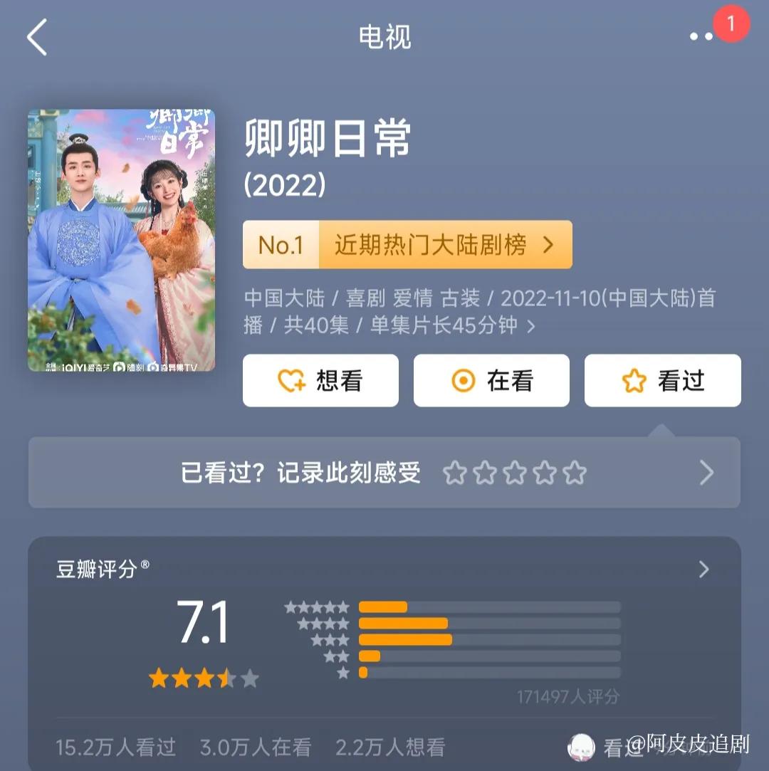 《卿卿日常》豆瓣评分:7.1分