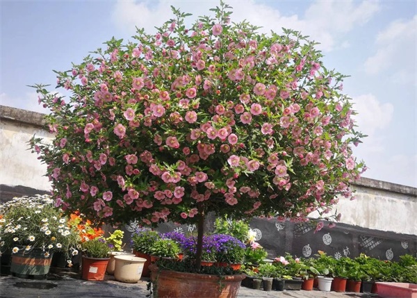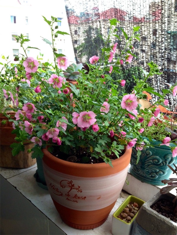 别小看它,虽然它的花朵很小,但是很耐看很精致,颜色呈现出淡粉色,有时候颜色浅一点,有时候颜色深一点,都是挺漂亮的,一棵盆栽小木槿,在花期的时候,有时候每天能开上百朵花儿,都是轻而易举的,放在窗台上,好多天都在开花,给我们带来好多天的高光闪亮时刻,看上去,真的是非常惊艳的。那么小木槿盆栽该如何养护呢?