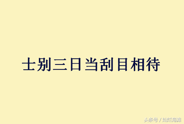 本文要说的成语,便是吕蒙口中的“士别三日刮目相待”,意为即使三日不见,别人也会有进步,不能再用老眼光去看人。这也是吕蒙首创的一句成语。