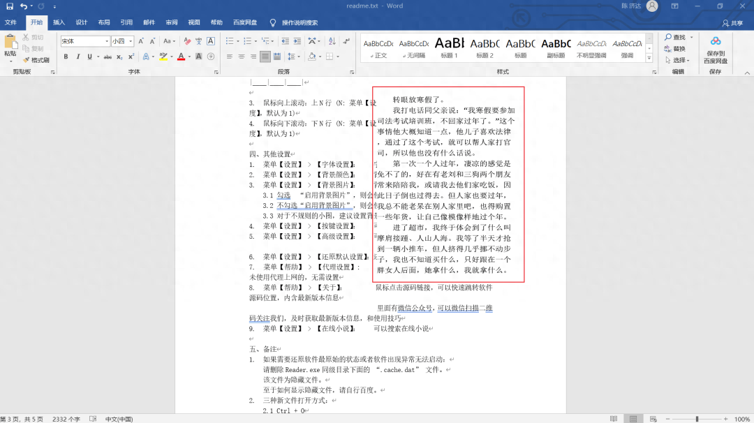 按住F12,软件既可以切换无边款模式,ctrl+/ctrl-就可以放大/缩小小说字体,这样就可以和你的wordd文档完美切合。当然·,更多软件的设置问题可以查看软件里面内置的文档,蛋蛋这里就不一一赘述了。