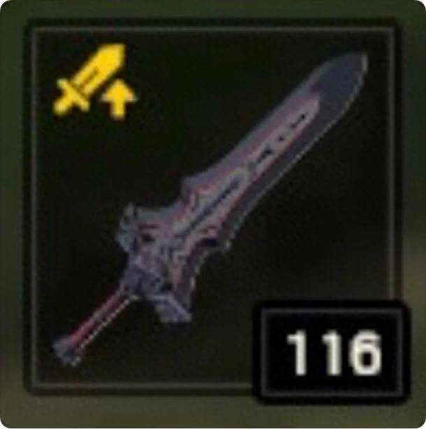 5. 116攻近卫大剑,潜行刺杀或者人马上背专用,塞尔达传说旷野之息中屠龙刀级别的大剑。目测6次血月可获得金色附魔116攻击。