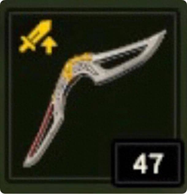 科幻拉风的外形,在古代兵装套1.8倍伤害加成下,有108伤害,是最强单手武器,由于是古代武器,具有不被雷击,且守护者伤害+30%的BUFF!