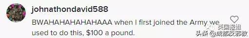 “哈哈哈哈哈哈哈我当初加入军队的时候就做过这个。一磅100美元。”