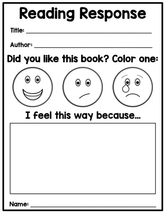 表情包读书报告表。包含书名、作者,以及给表格中的人脸涂色,选择孩子对整本书的感受,并用语言描述一下自己的感受和原因。