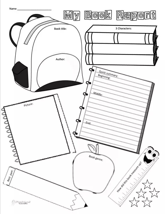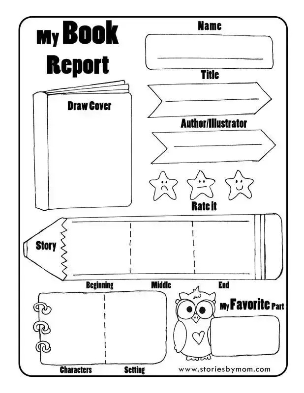 还有一个更有条理的读书报告表格。不仅要找到书中的主要人物,在归纳总结书中内容的时候,还要用beginning、middle和end三段式的格式来概括故事内容,这个读书报告表更适合能写能画的大孩子。