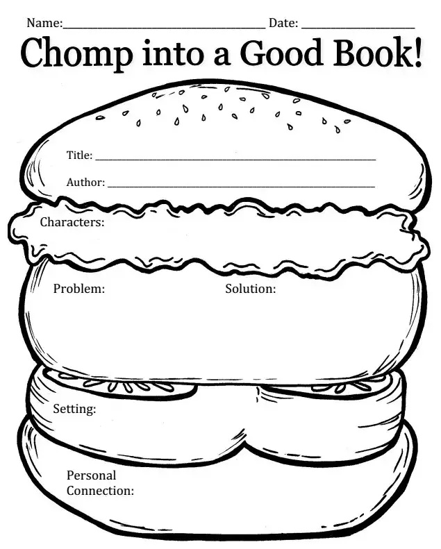 汉堡读书报告表。把一本书的内容分成好几层,最上面是书名和作者,下面几层分别是,人物、遇到的问题、解决办法、故事背景和归纳总结。