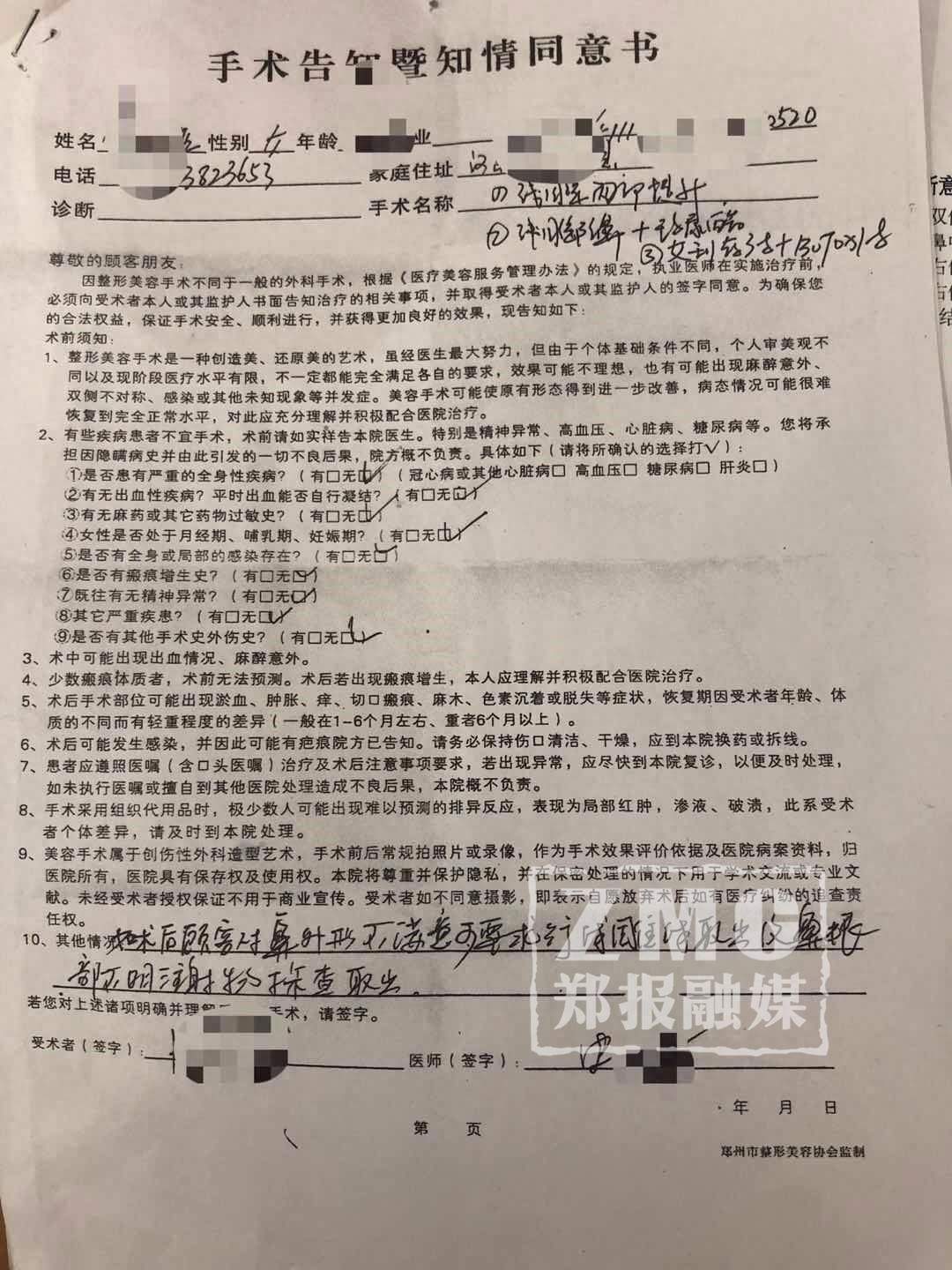 5月30日,郑州晚报热线接到一位市民反映:“我爱人在顺河路茉莉亚国际整形美容给鼻子打了玻尿酸,修复手术后鼻梁塌陷。现在头还很疼,鼻子闻不到味。找他们反映,他们说手术没有问题。现在我们很痛苦,不知道该怎么办?”