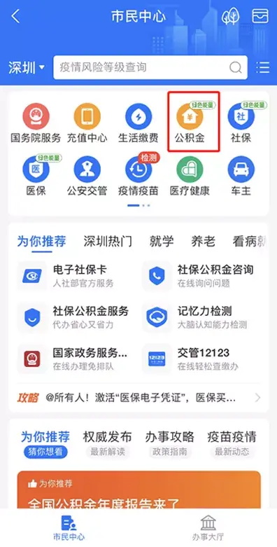 另外,也有很多朋友问公积金账户怎么查,这里同样在支付宝的“市民中心”就可以查到,点击“公积金”,再点“公积金查询”就可以看到了。