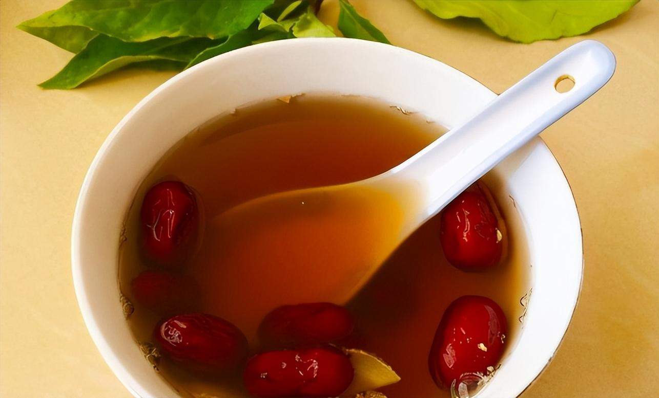 做法:一小块姜洗净切片,然后把枣去核也切成片状。锅中倒清水放入材料,水烧滚后加入适量红糖,小火煮10分钟,待茶汤呈现浓郁的红润色泽即可。