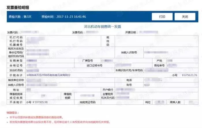 (6)本平台仅提供所查询发票票面信息的查验结果。如对查验结果有疑议,请持发票原件至当地税务机关进行鉴定。