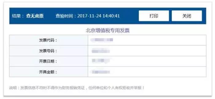 (4)查无此票:由于存在开具方离线自开票、发票电子数据的同步滞后(通常至少1天)、查验人录入错误等问题,导致相关发票在税务机关的电子信息中无法检索到。如果确认输入项无误后,请于第二天再行查验。