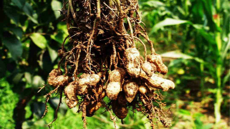 花生适宜春季播种,一周左右的时间就可以长出新苗,幼苗成长茂密后会开出黄色的花朵,之后,土壤下面的根部长出幼小的果粒,慢慢地果粒逐渐饱满,果壳变得坚硬。