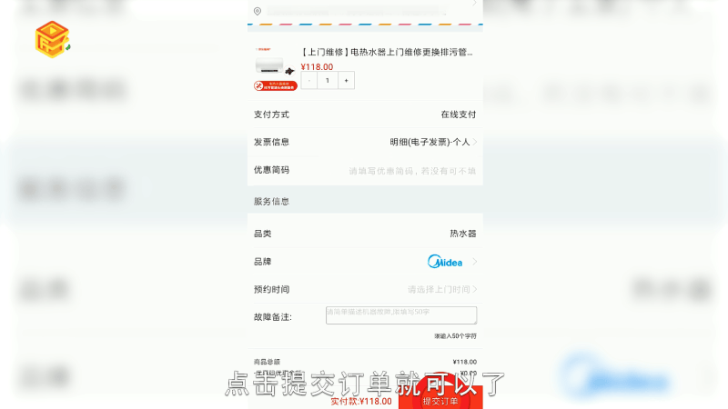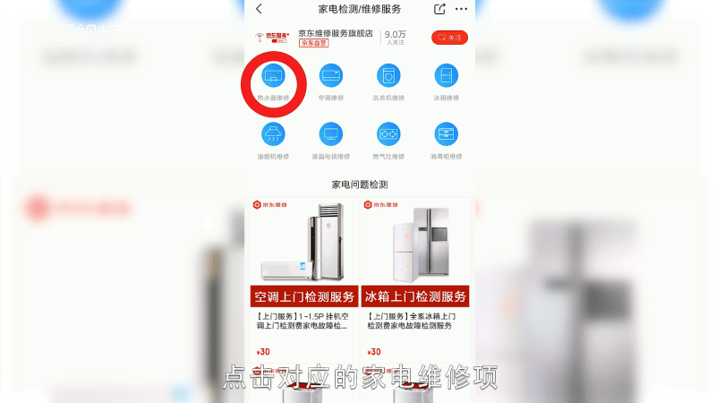 选择家电维修,选择对应的家电维修项