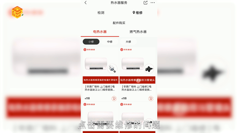 选择检修或维修,点击需要维修的问题