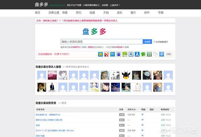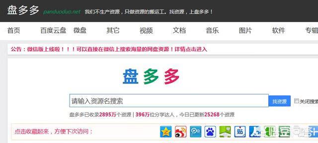盘多多:综合的网盘资源搜素引擎,大致可以搜索的内容和胖次差不多,不过盘多多现在还可以在微信上进行资源搜索,有自己的公众号,手机上搜索比较方便。今天截至今天为止盘多多收录的资源数:2899万个资源,397万位分享达人,今日已更新20766个资源。鸵鸟搜索:在我看来这个搜索更多是集中在影视资源的搜索上,所以需要这块资源的工具可以来这里。也有自己的分享社区,可以直接在这里面找资源或者分享资源。
