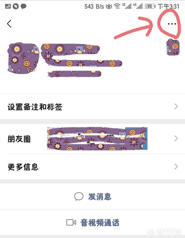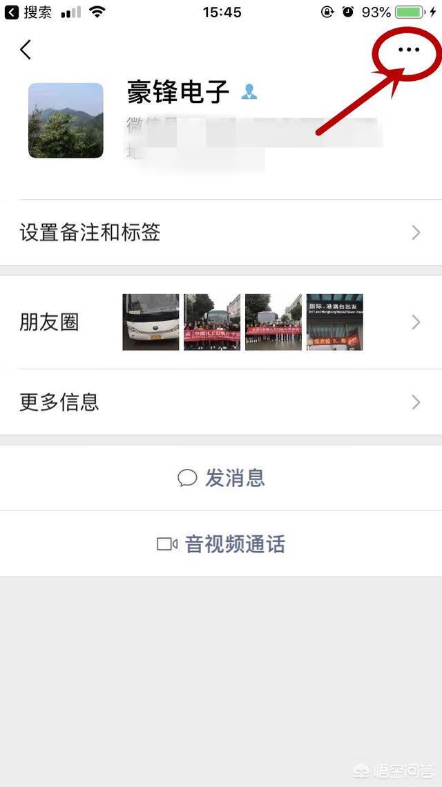4、点击你想删除的好友的头像会出现下图,然后点击右上角“…”