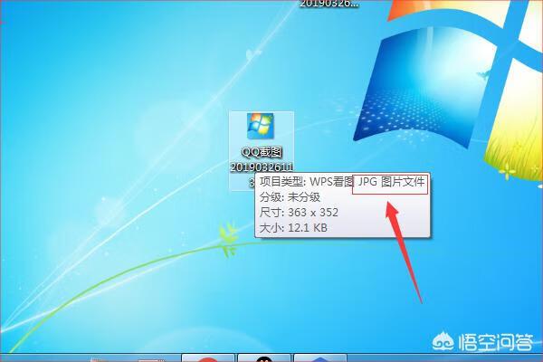 6、最后,在桌面可以查看截图的图片文件类型为JPG。qq截图png格式直接转成了JPG格式。