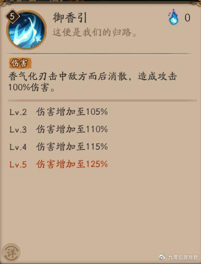 一技能【御香引】为常规普攻技能,没有特殊的机制。